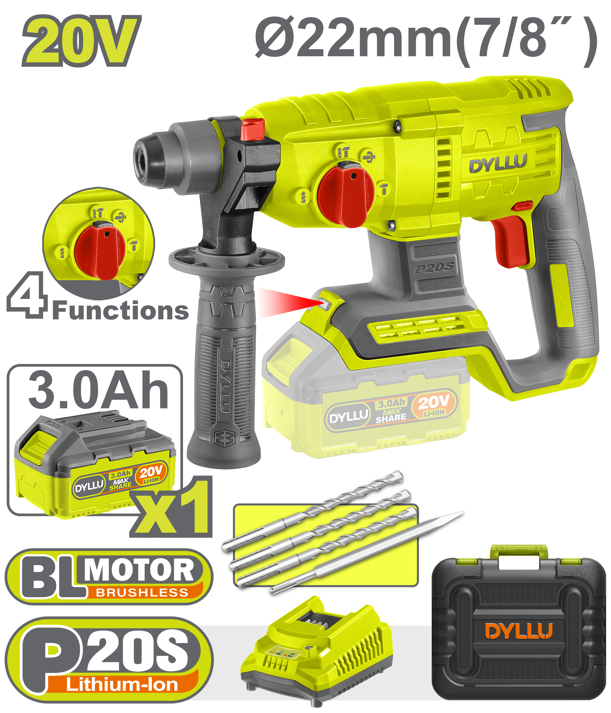 دريل هلتي ثلاثه أنماط لا سلكي 20 فلت 22MM مع بطارية